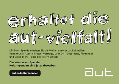 Unterstützen Sie das aut mit einer unverbindlichen Spende, die ab sofort steuerlich absetzbar ist.