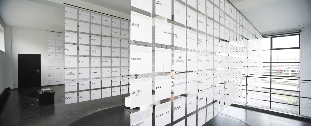 Der Architekt, Grafiker und Typograf Andreas Uebele recherchierte dazu die Schriftkultur im öffentlichen Raum Innsbrucks, fotografierte die an Bauten vorgefundenen Logos, Geschäftstafeln, Hinweisschilder und Beschriftungen aller Art und destillierte daraus ein "alphabet innsbruck", das – ergänzt durch kurze augenzwinkernde Texte zur Typografie von Georg Salden sowie Stadt- und Hausgeschichten von Gretl Köfler– im aut als raumübergreifende Installation präsentiert wird.