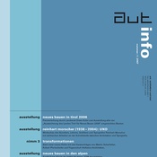 weiterlesen …Die Ausgabe 1/07 der Programmzeitschrift aut: info mit Hintergrundinformationen zu vier Ausstellungen sowie zum Programm des aut zwischen November 2006 und März 2007.