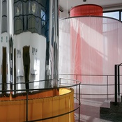 Dies gilt auch für die Ausstellung im aut, in der SelgasCano bewusst darauf verzichten, anhand von Projekten einen Einblick in ihr Schaffen zu geben, sondern vielmehr ein Stück Architektur in Form einer raumgreifenden Intervention realisieren. Ausgehend von der Auseinandersetzung mit dem ehemaligen Brauereigebäude installieren sie in den früheren Öffnungen der Sudkessel insgesamt acht Zylinder in unterschiedlichen Materialien und Farben, die sich auf- und abbewegen. Durch dieses „Perpetuum mobile“ verwandeln sich unsere Ausstellungsräume kontinuierlich und werden zu „Unstable Zones“, die den Besucher*innen ein Erlebnis für alle Sinne bieten. Gleichzeitig möchten SelgasCano mit ihrer Intervention das Bewusstsein dafür schärfen, welche Möglichkeiten die Architektur besitzt, um mit minimalen Mitteln einen Raum und damit das Leben zu verändern.