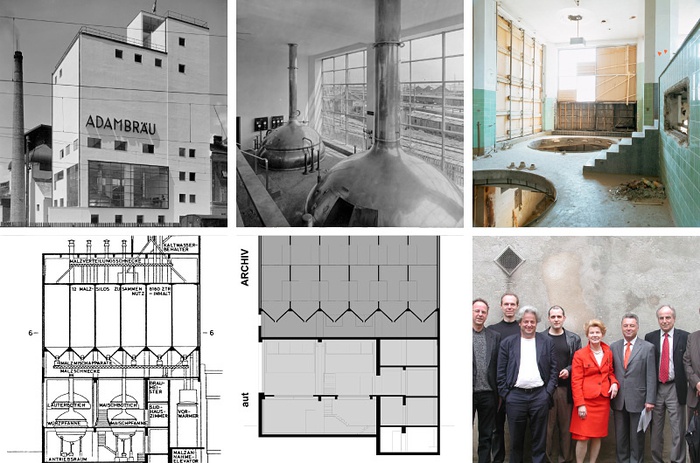 Erected according to plans by Lois Welzenbacher (1889–1955), the brewhouse of the Adambräu brewery is one of the few preserved structures of this important architect in Tyrol. A modern industrial building, developed out of the requirements of the production process, a machine, a symbol for the rationalism of technology, placed with precision into the cityscape by Lois Welzenbacher.