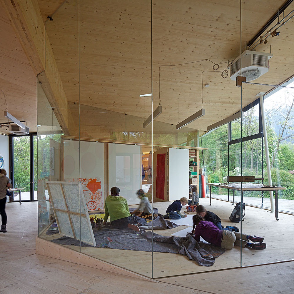 Führung durch die neue Kunst- und Architekturschule für Kinder und Jugendliche, die von Studierenden am ./studio3 der Universität Innsbruck entworfen und errichtet wurde.