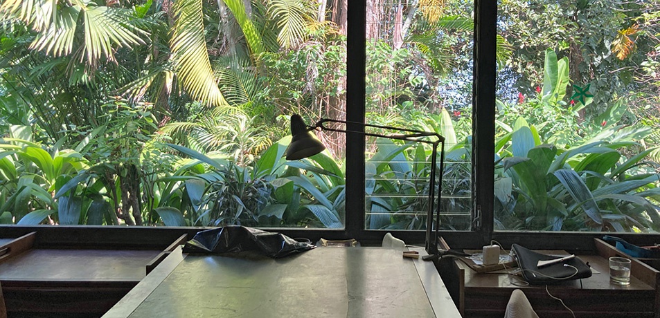 El Salvador im Januar 2023: Das kleinste und zugleich am dichtesten besiedelte Land Mittelamerikas befindet sich im Ausnahmezustand, Präsident Nayib Bukele inszeniert sein hartes Vorgehen gegen die Bandenkriminalität medienwirksam, Berichte über Massenverhaftungen und Soldaten, die ganze Städte einkesseln, tauchen auch in Europa vermehrt in den Medien auf. Ehrentraut Katstaller-Schott lebt zu diesem Zeitpunkt im Alter von fast 99 Jahren zurückgezogen in ihrem Privathaus nahe der Hauptstadt San Salvador, das sie mit ihrem 1989 verstorbenen Mann Karl Katstaller geplant hat und in dem sich auch das gemeinsame Atelier befindet. Als wir es zu Jahresbeginn 2023 zum ersten Mal betreten, wirken die Zeichentische wie eben erst verlassen, in den Schränken und Regalen lagern unzählige Entwurfsmappen, Skizzen, Planrollen, Fotografien, Auftragsbücher, Briefe und persönliche Dokumente.