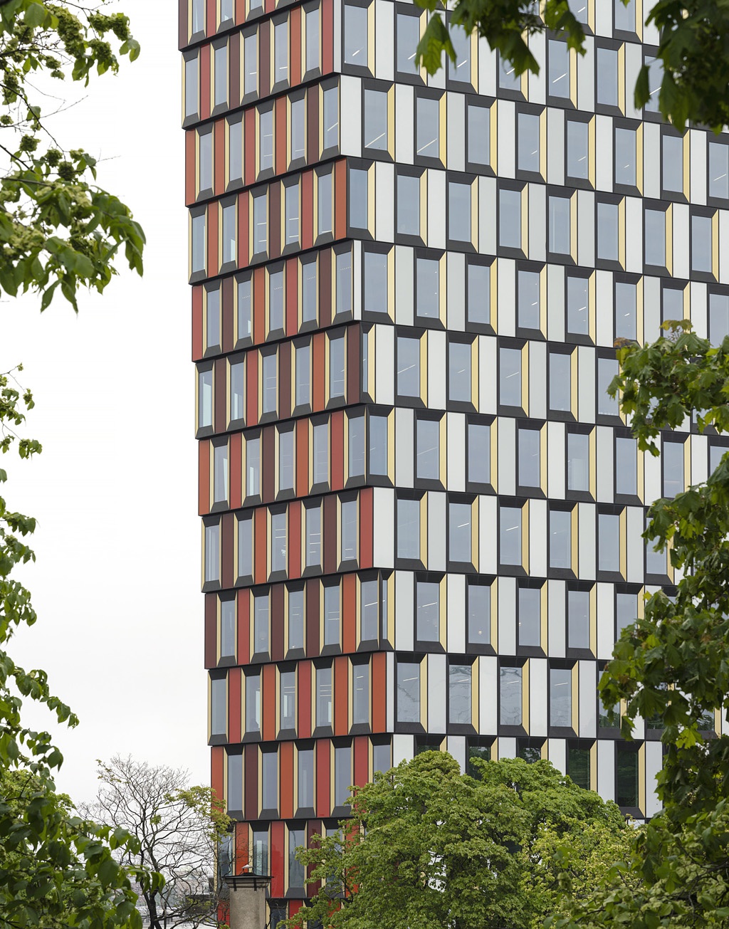 Bei ihren Farb-Setzungen geht es immer auch um eine eigensinnige Kommentierung der haptischen wie optischen Oberflächen der Stadtquartiere in denen Sauerbruch Hutton bauen. Etwa beim Büroturm „Sthlm 01“ in Stockholm, bei dem sich die roten Fassadenfelder als in die Vertikale gesetzter Verweis auf die schwedenroten Holzhäuser verstehen lassen. Oder bei den horizontalen, glänzend grünen und gelben Brüstungsbändern in Helsinkis neuem Quartier Airut, die an die Farben des einstigen Container-Hafens erinnern. Oder bei der vielfarbig zersprengten, unterschiedlichste Einflüsse reflektierenden Farbgestaltung des Pariser Quartiers ZAC Claude Bernard dort, wo die Innenstadt auf die Gemeinde Aubervilliers mit ihren über 40 verschiedenen Nationalitäten trifft.