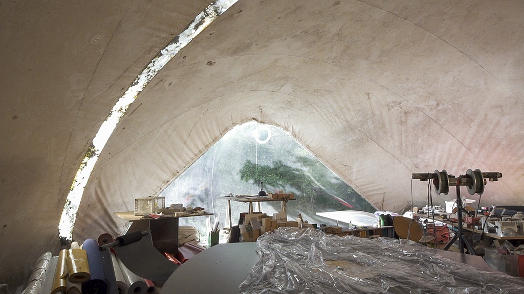 Für sein Atelierhaus, in dem er seit 1973 – davon 40 Jahre gemeinsam mit seiner 2015 verstorbenen Lebenspartnerin Marie-France Vesperini – lebt, hat er erstmals eine aufblasbare Architektur auf zwei Ebenen konzipiert. Als Untergeschoß hob er einen 15,6 m langen und 2,4 m breiten Raum aus, der – ohne Trennwände, aber in einer räumlichen Schichtung – die zentralen Funktionen des Wohnens beherbergt. Diese unterirdische Ebene öffnet sich über ein bewegliches Podest ins Obergeschoß, das von einem 1972 produzierten, weitgespannten Volumen gebildet wird.