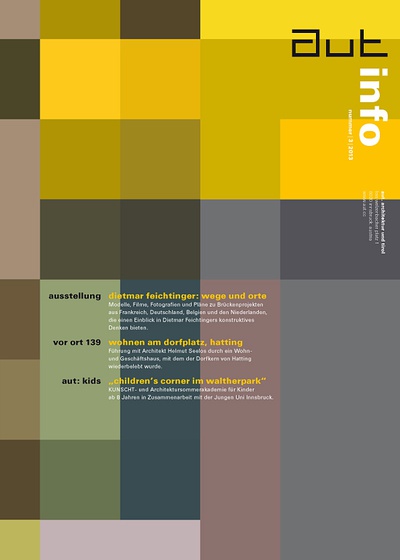 Die Ausgabe 3/12 der Programmzeitschrift aut: info mit Hintergrundinformationen zu den Ausstellungen "ZV-Bauherrenpreis 2012" und "Neues Bauen in Tirol 2012“ und zum Programm des aut zwischen Oktober und Dezember 2012.