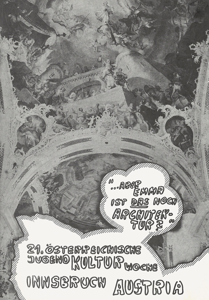 vortragDer Architekt und Architekturtheoretiker Günther Feuerstein zählt zu den Schlüsselfiguren der österreichischen Architektur-Avantgarde der 1960er- und 1970er-Jahre. Bereits 1958 hat er mit seinen Forderungen für eine „inzidente Architektur“ – eine vom Emotionalen und nicht vom Rationalen bestimmte Architektur – einen nachhaltigen Beitrag zur Architekturdiskussion in Österreich geleistet. Von 1961 bis 1968 war er Assistent von Karl Schwanzer an der TU Wien und veranstaltete dort u. a. das legendäre „Klubseminar für Architekturstudenten“. Seinem Ruf als Vordenker wurde er auch mit der Konzeption der 21. Österreichischen Jugendkulturwoche gerecht, die 1970 unter dem Titel „... aber Emma, ist das noch Architektur“ in der Innsbrucker Messehalle stattfinden sollte, letztendlich jedoch abgesagt wurde.